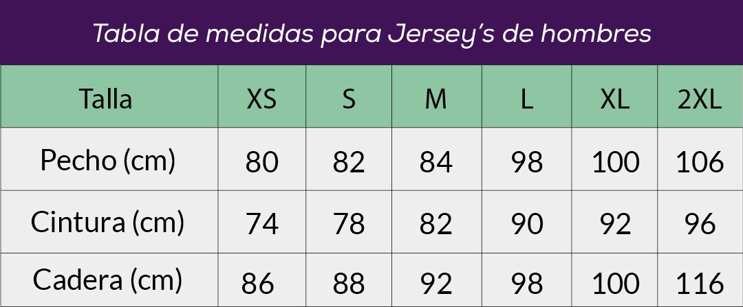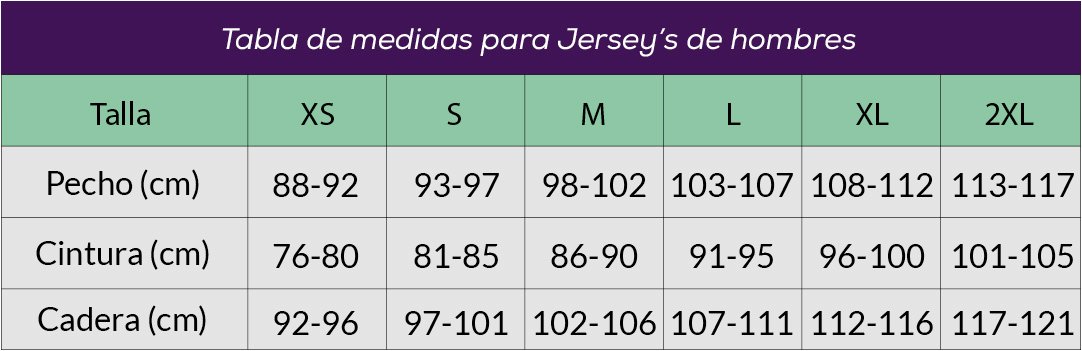 Lee detenidamente cada ítem: todos los Jersey´s tienen un tallaje FIT profesional,